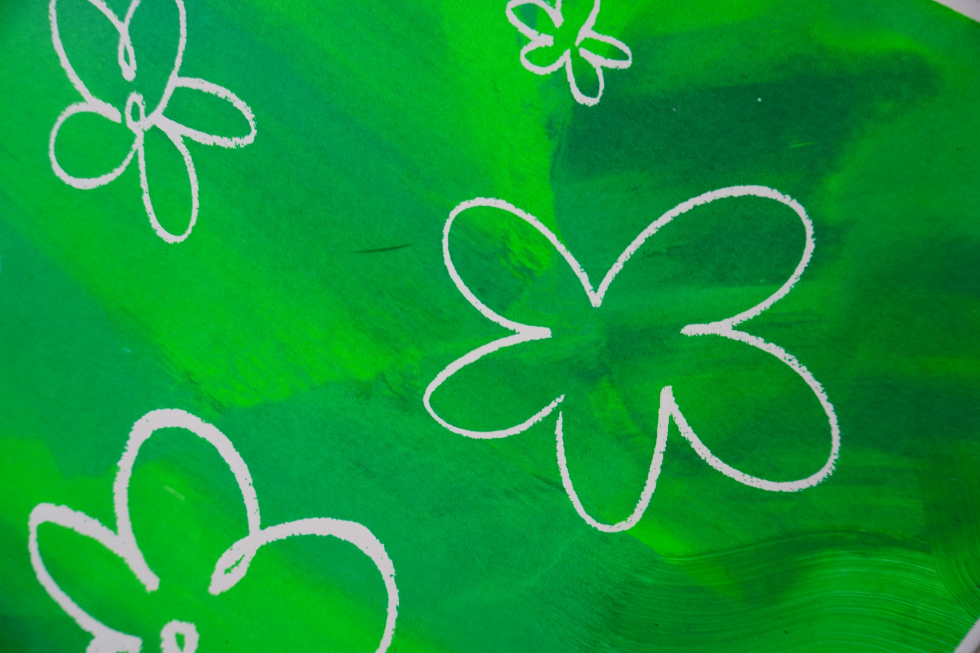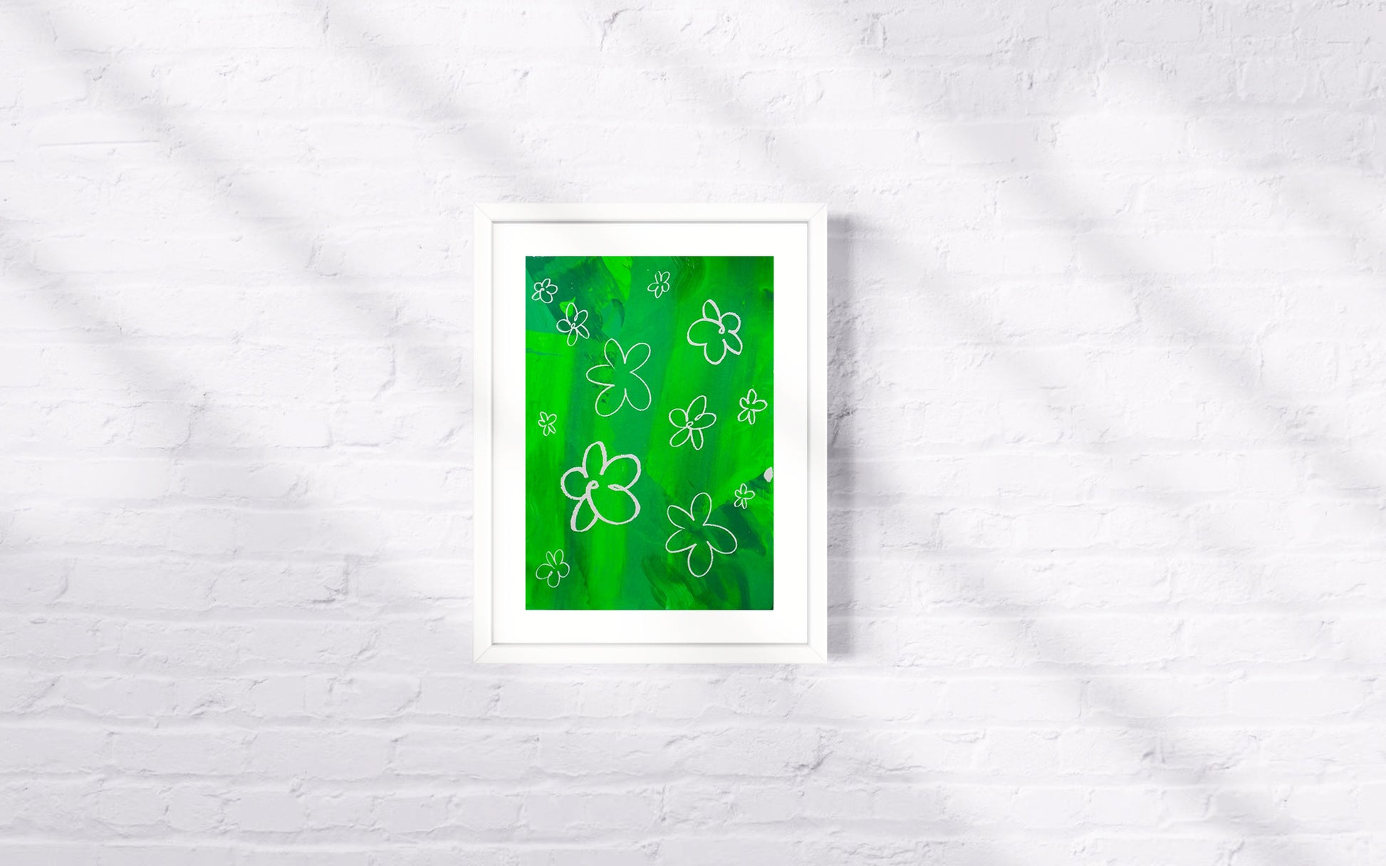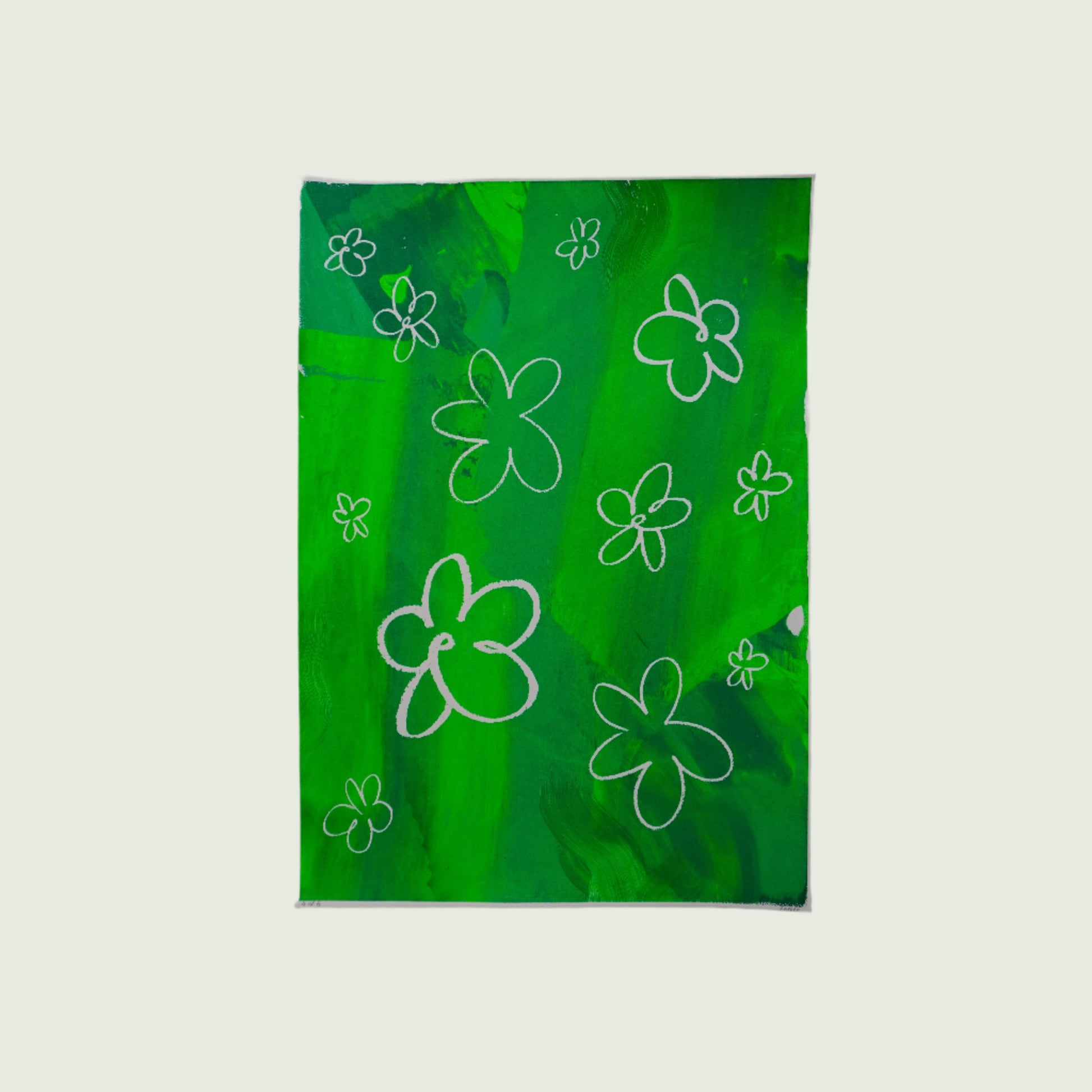 Unique print with hand drawn flowers, free hand printing the negative creating a feeling of movement and flow which makes unique lines and patterns, in a bright green colour way. Each piece is hand made and printed in London.